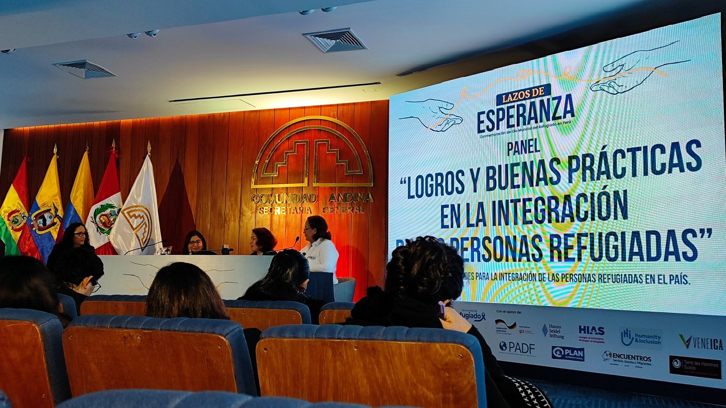A continuación, pasamos a escuchar el panel LOGROS Y BUENAS PRÁCTICAS EN LA INTEGRACIÓN DE LAS PERSONAS REFUGIADAS. Invitadas al panel, Nancy Navas Vargas Presidente fundadora de VENEICA y Coordinadora País de PACUHR en Perú, Stephany Orihuela de IRC y Karina Sarmiento de PADF.