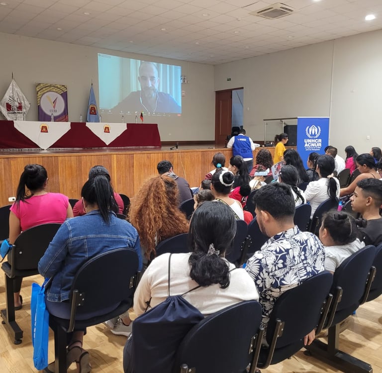 El simposio "Refugiados y migrantes como motor de desarrollo" se realizó el viernes 7 de julio de 2023 en el Auditorio Raúl Porras Barrenechea de la Municipalidad Provincial de Ica. El evento contó con la participación de más de 150 personas en presencial y conectadas a través de la página en Facebook y de Instagram de VENEICA.